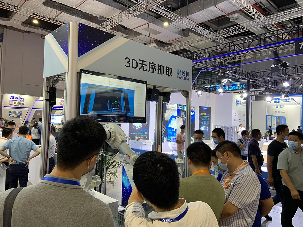在展会中,汉振智能还演示了新版的3D无序抓取系统,顺应了当下机器代替人工以提升企业效率的趋势,解决了料框中散乱工件的上下料技术难点,在汽配、3C电子、轴承等行业均达成了批量出货和模式化复制。