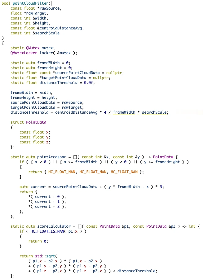 汉振3D开发SDK中,可以直接调用点云滤波接口,使用方法如下: