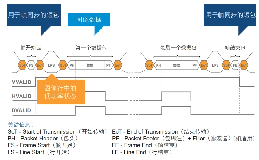 CSI-2是一种数据包(packet)导向型协议。因此,规范中特别描述了数据包格式。规范中也指定了一般应用能正常使用的像素格式(如RGB、YUV、RAW和JPEG等)。