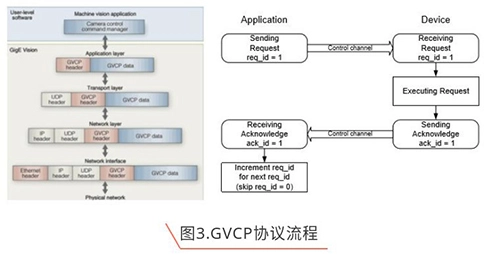 协议基于UDP,在应用层使用GVCP与GVSP协议来完成控制与数据流传输。