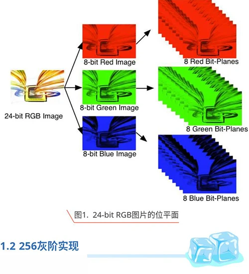 DLPC350最高支持帧率为120Hz的24-bit RGB数据输入,每一帧都是由三色(RGB)组成的。以120Hz为例,每帧数据的时间为8.3ms(1000ms/120),如果RGB占比为1:1:1,则平均每一种颜色有2.78ms的时间片。每种颜色又可以划分成8位的bit-planes,1 bit-plane代表一幅2D图片所有像素的1位集合,如图1所示: