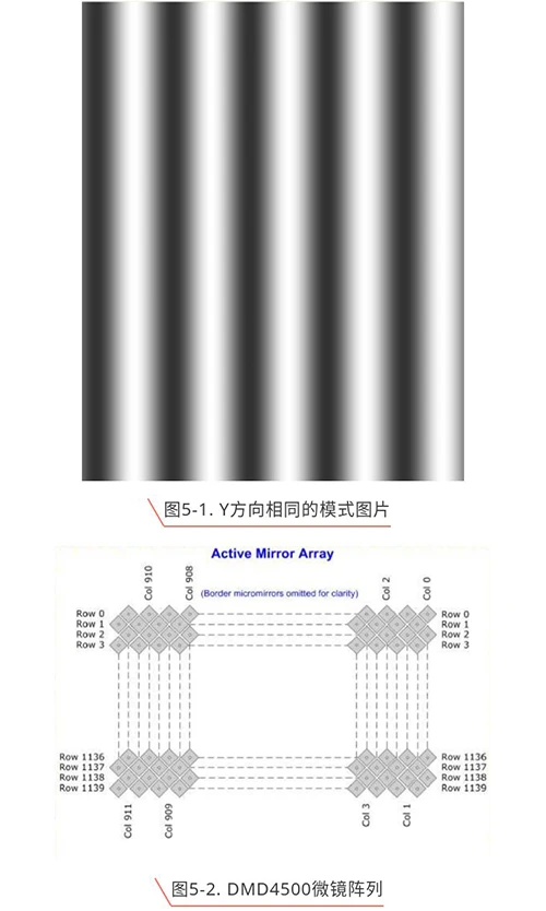 对于DLP4500,如果使用的图案如图5所示,其中强度/位/颜色在X方向上变化,但图案在Y方向上相同,即row0,row1, ......,row1140都相同: