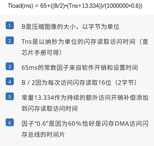 在这种情况下,压缩图像的大小将根据模式而变化。加载时间(来自闪存的每个24位模式)将与压缩图像大小成正比。加载时间也将与闪存访问时间成比例。
