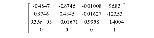 这里,利用矩阵的奇异值分解法求得RT矩阵为: