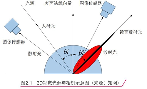 在普通2D机械视觉中,可以通过相对角度调整,改变光源位置,从而改变光入射角度并调整相机接收位置,来消除一部分强反光。