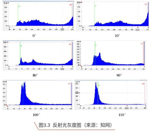 可参考一组实验数据。用激光作为入射光源(激光就是偏振光无需偏振片),入射近似垂直金属表面,相机与光源入射法线成45°角,控制相机前的偏振片角度从0°到110°均匀变化,采集相应图像,得到如下图数据。