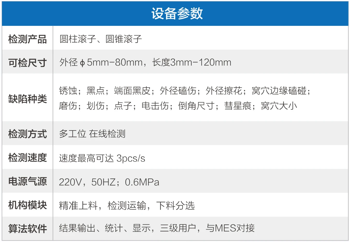 3. 检测速度:速度最高可达3pcs/s